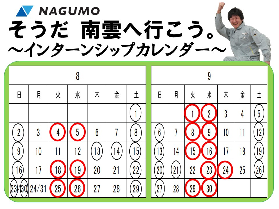 2020年7月10日インターンシップ実施日程