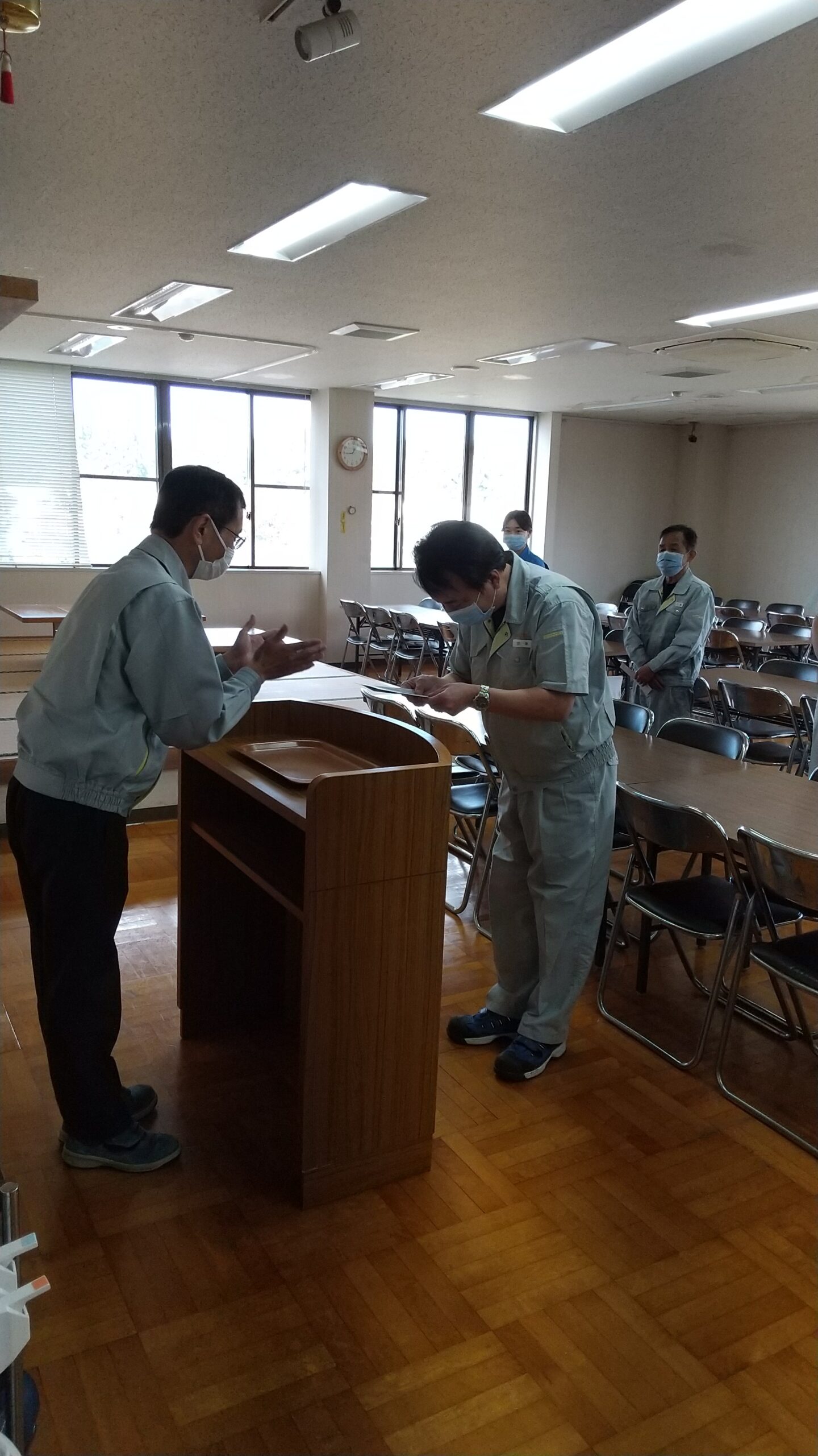 社長より訓示があり、永年勤続と優秀社員賞の表彰が行われました。