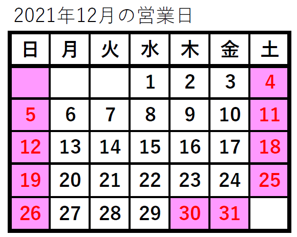 2021年 年末年始の営業日